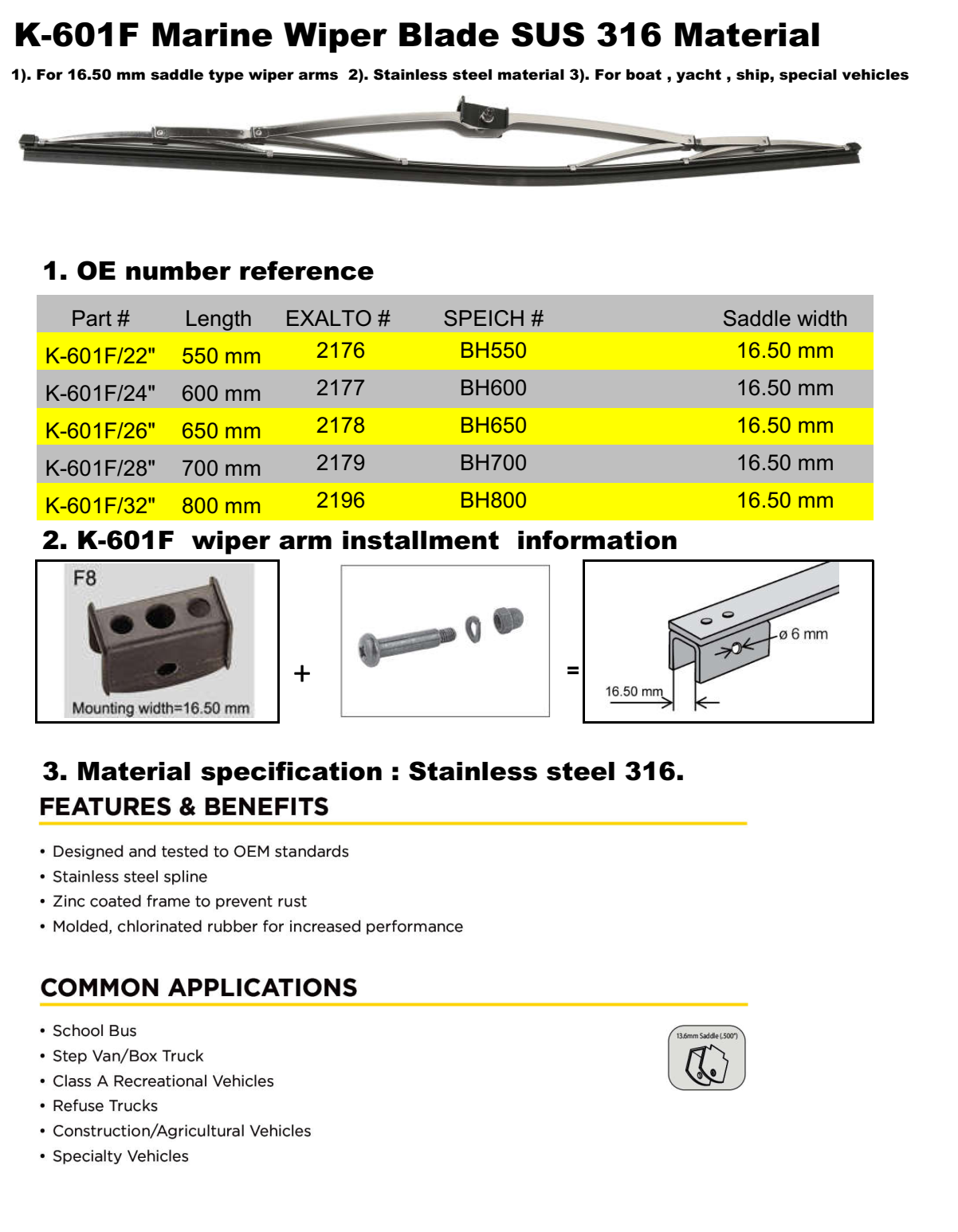 5. Available length : 550 mm , 600 mm , 650 mm, 700 mm, 800 mm.