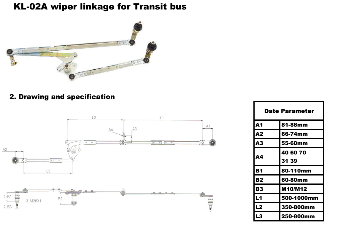 KL-02A wiper linkage for Transit bus