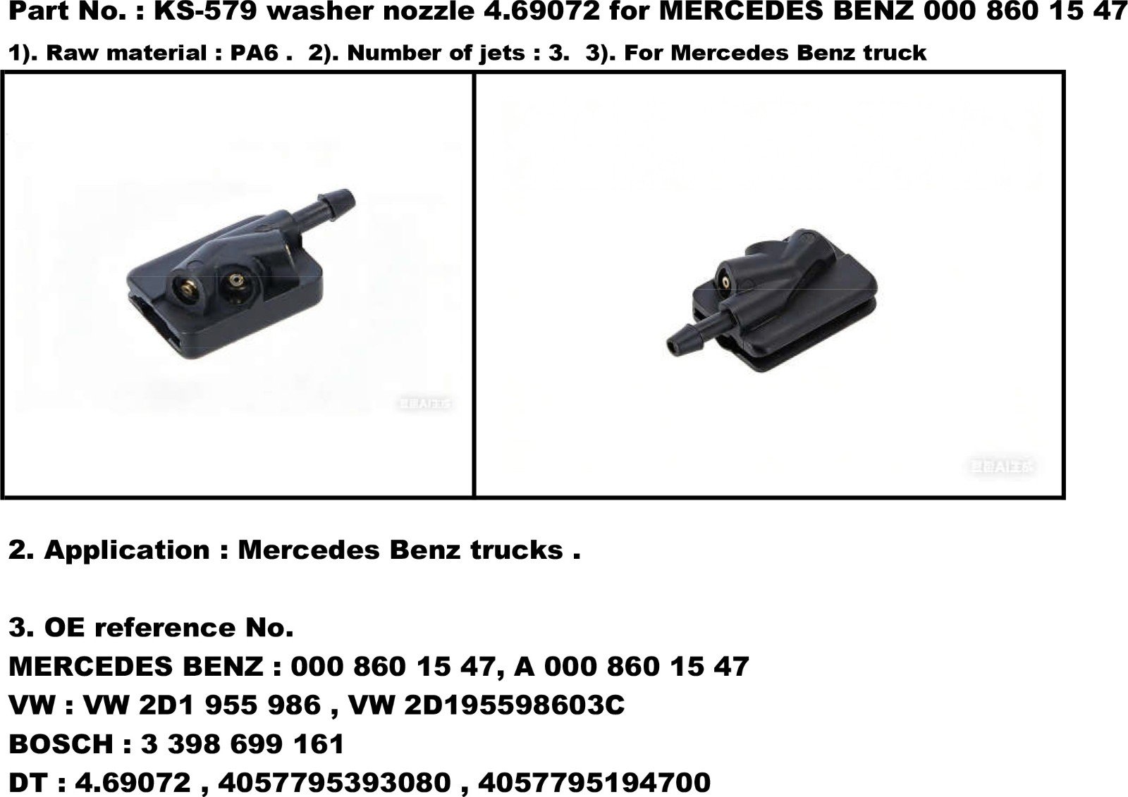 KS-579 washer nozzle DT No. 4.69072 for MERCEDES BENZ 000 860 15 47