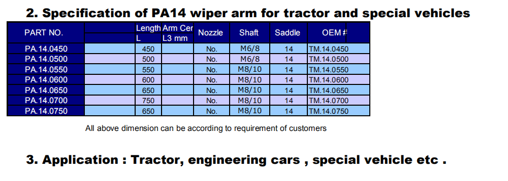 3. Length of wiper arm is adjustable.