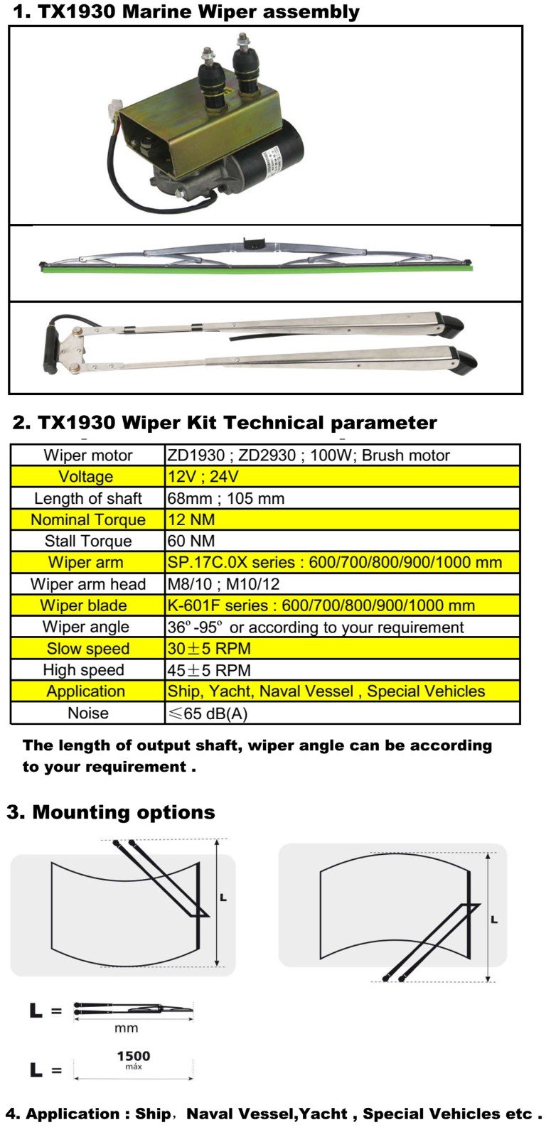 5. Wiper angle : 40º-80º or according to your requirement .